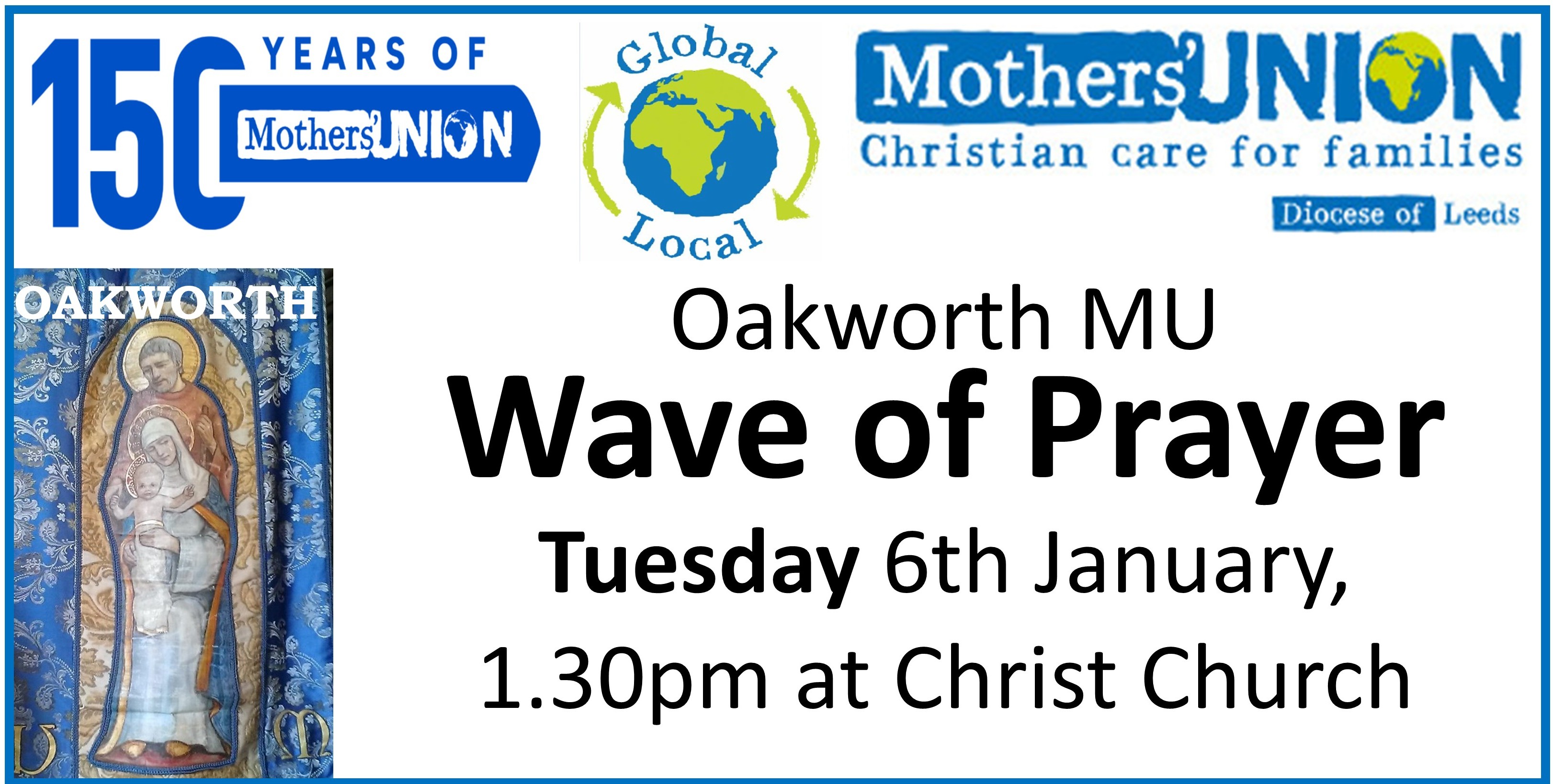 JANUARY: ANNUAL 'WAVE OF PRAYER' Oakworth MU took their turn in the worldwide prayer slot, and had a good time of praying for our link dioceses abroad as well as for our own community here at Oakworth.
